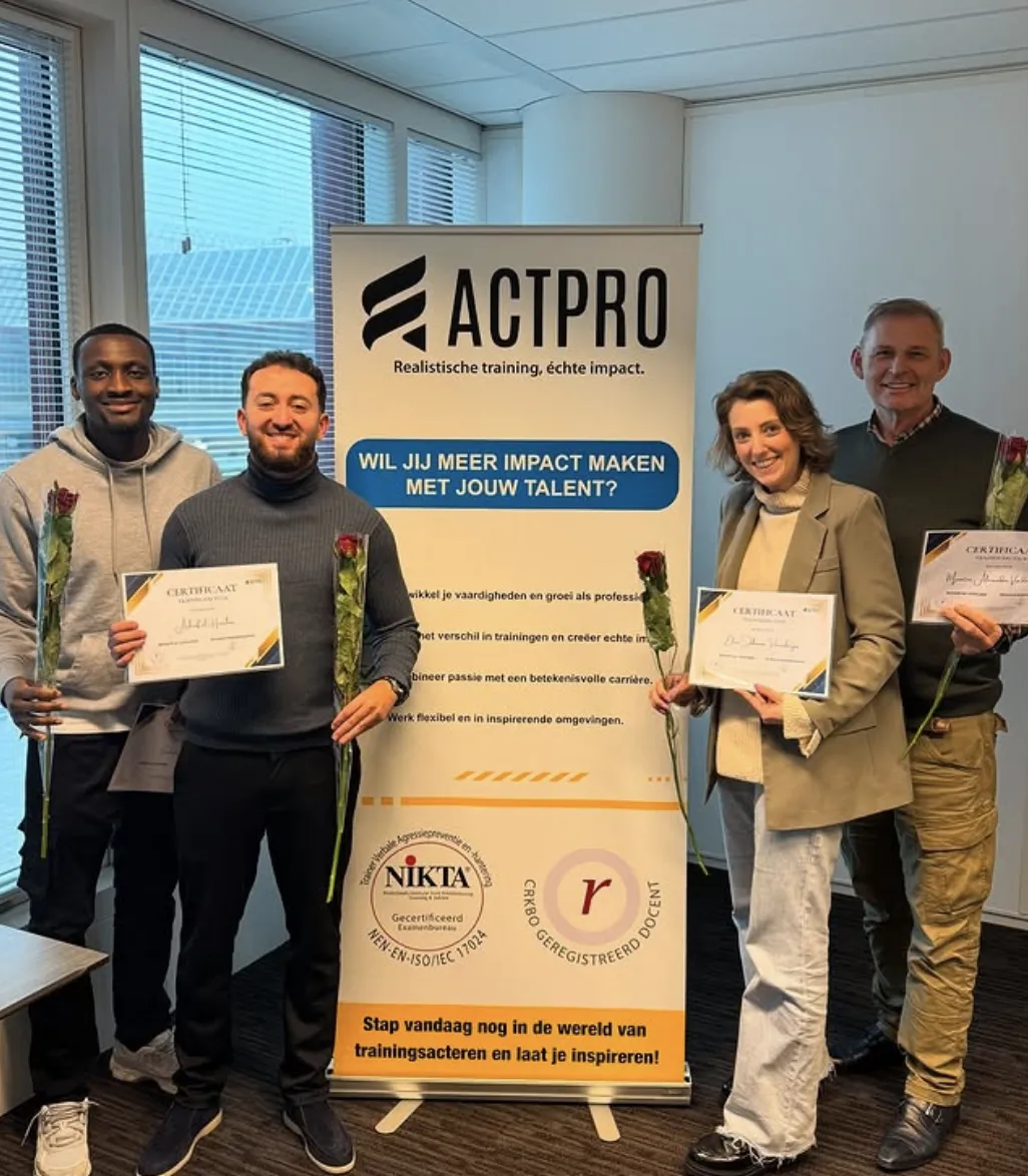 De open avond gaf me direct het gevoel: dit is voor mij. De opleiding was persoonlijk, praktijkgericht en super goed begeleid. En ja – ik ben na afloop meteen gestart als trainingsacteur. Wat een switch!